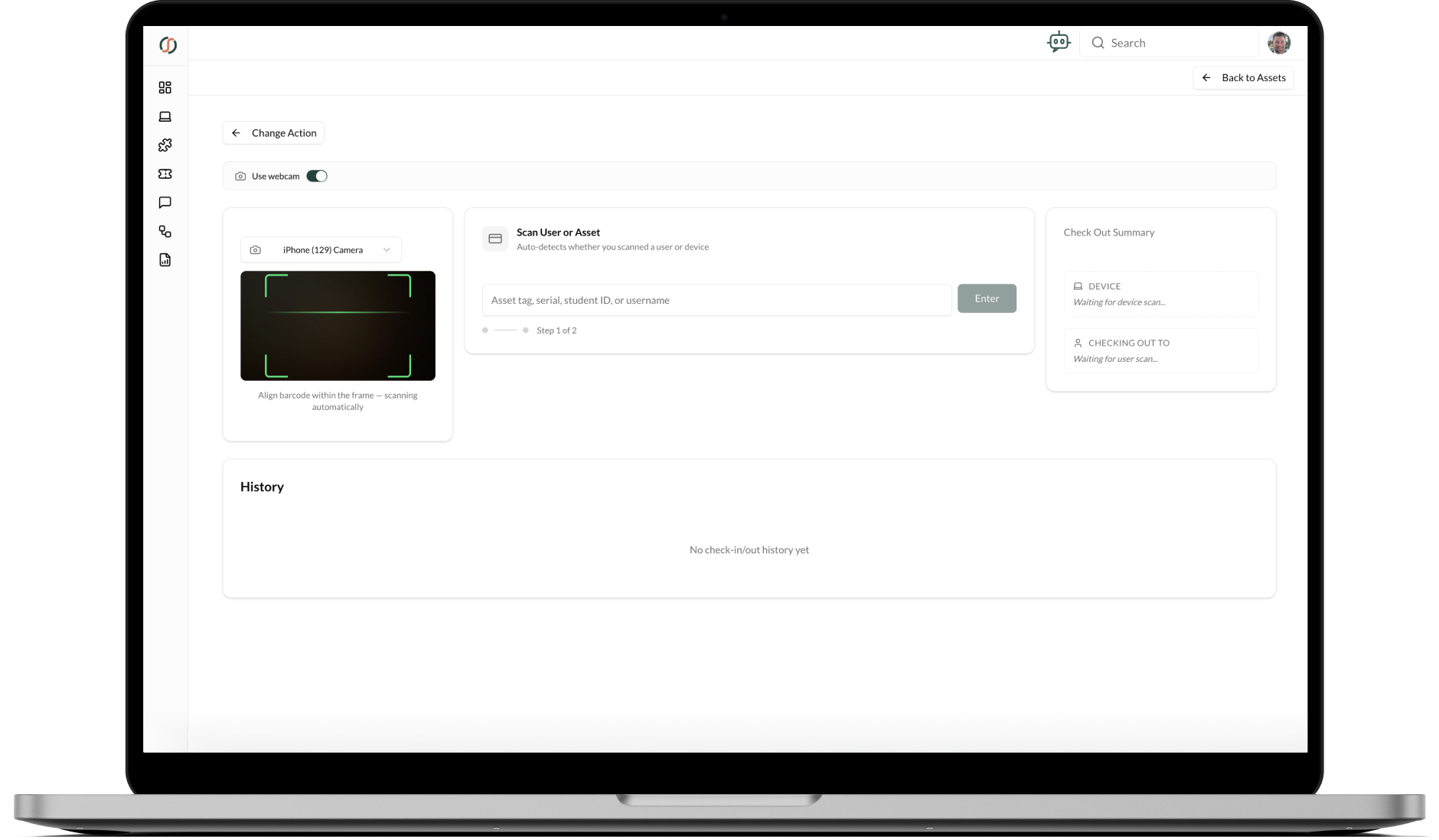 Check devices in and out as they’re issued or returned, keeping large deployments and end-of-year collections organized.